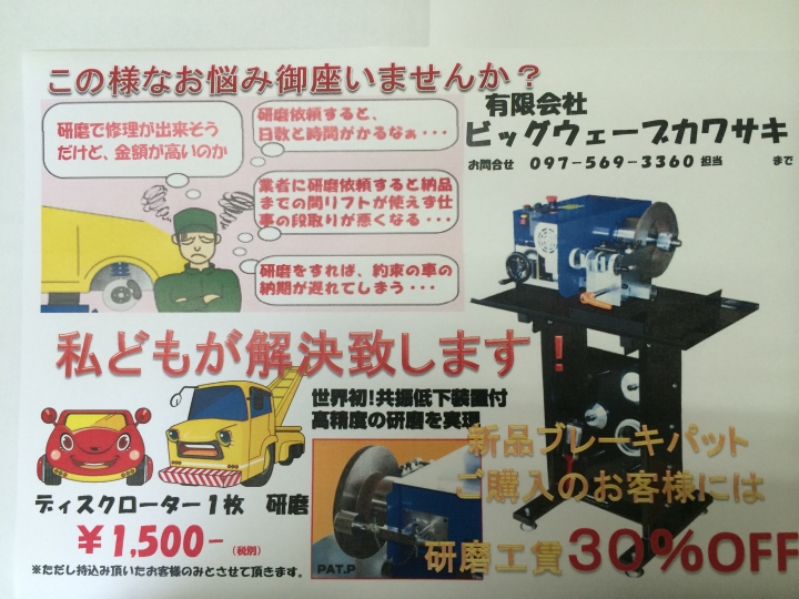 なんと、同時に新品ブレーキパットご購入のお客様に限り、研磨工賃30%OFF